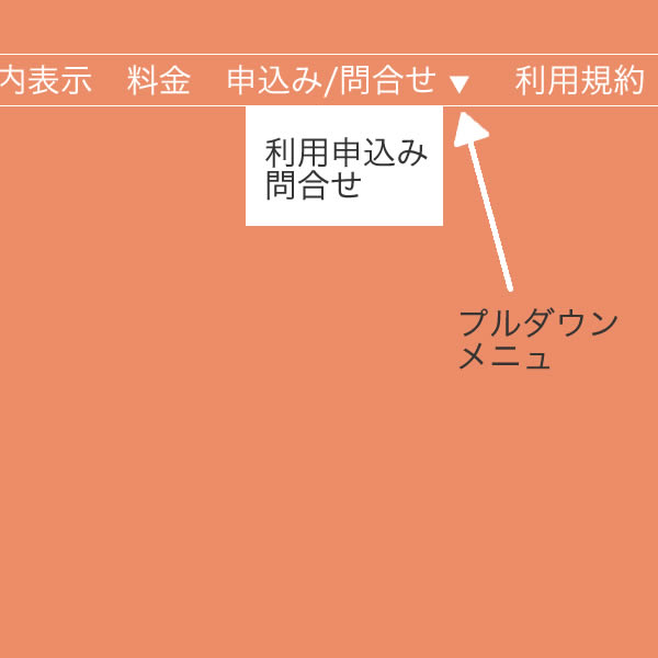 メニューの「申込み/問合せ」のプルダウンメニューから「利用申込み」を選択してください。申込みフォームが開きます。