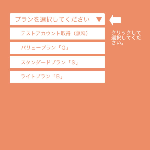 申込みフォームでは、最初に利用する「プラン」を選んでいただきますが、最初は無料のテストアカウントを取得することお薦めします。